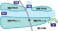 • 범람지역 흐름 특성에 따라 유하형, 저류형, 확산형으로 구분